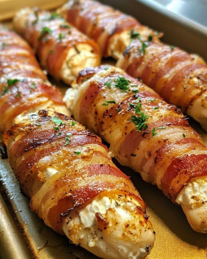 These Bacon-Wrapped Stuffed Chicken Breasts are a crowd-pleaser! Juicy chicken filled with a creamy, cheesy mixture and wrapped in crispy bacon. The aroma while baking is irresistible—perfect for a comforting, satisfying meal.