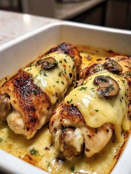 This dish is everything you want in a comforting yet impressive meal: tender chicken breasts filled with garlicky mushrooms and buttery goodness, sealed with melted cheese and baked to perfection. It’s low-carb, high-protein, and endlessly customizable — perfect for family dinners or when you want to wow your guests without breaking a sweat.