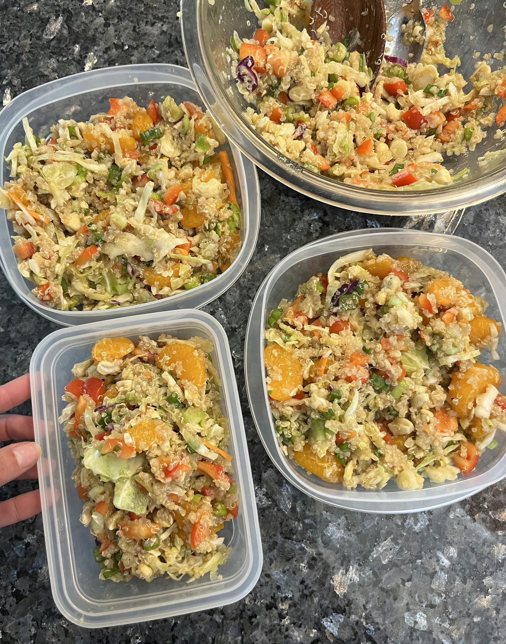 This vibrant and crunchy salad is a perfect make-ahead meal, packed with fresh flavors and textures. The zesty ginger dressing pairs perfectly with the sweet mandarins and hearty quinoa.