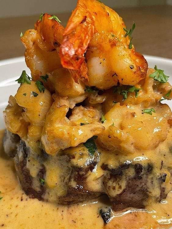 This is more than just a steak dinner — it’s a full sensory experience. The savory, perfectly seared steak is complemented by the sweetness of shrimp and the deep, buttery flavor of lobster in a silky, restaurant-style sauce. It’s surf and turf with an elegant twist, combining bold and delicate flavors in every bite.
